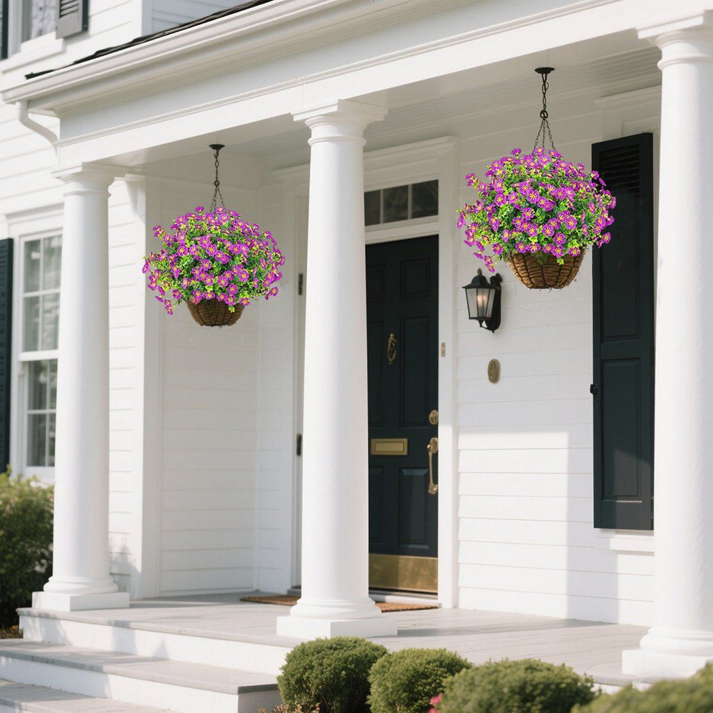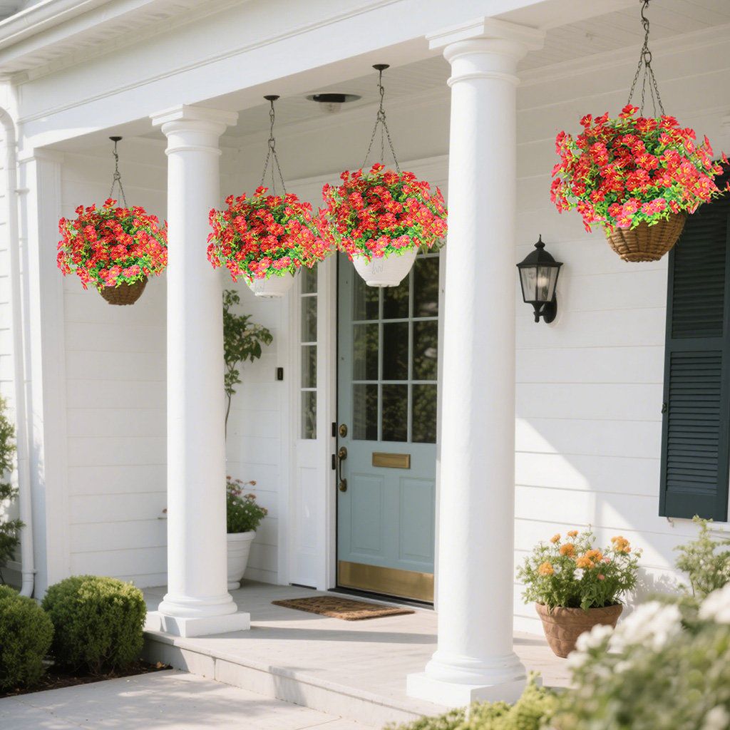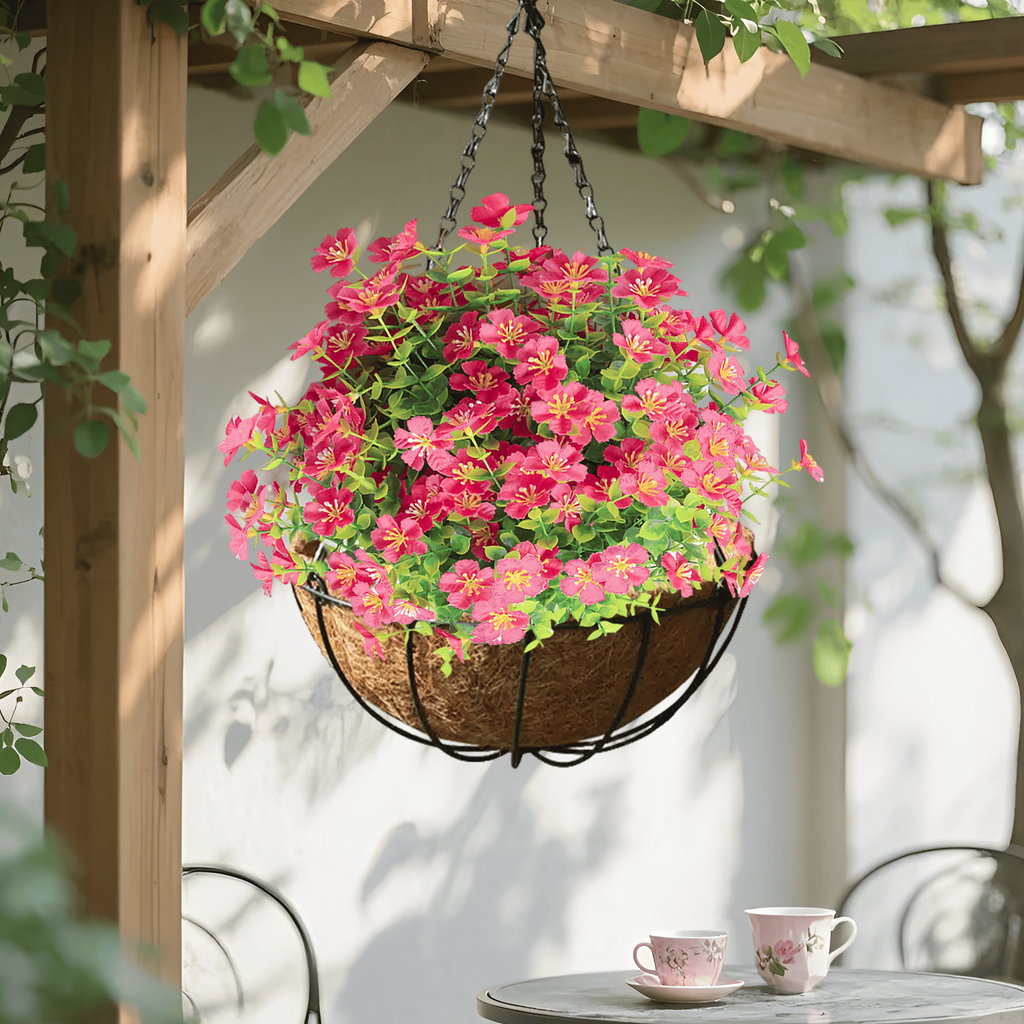 - Package Contents: Artificial flowers, Hanging baskets