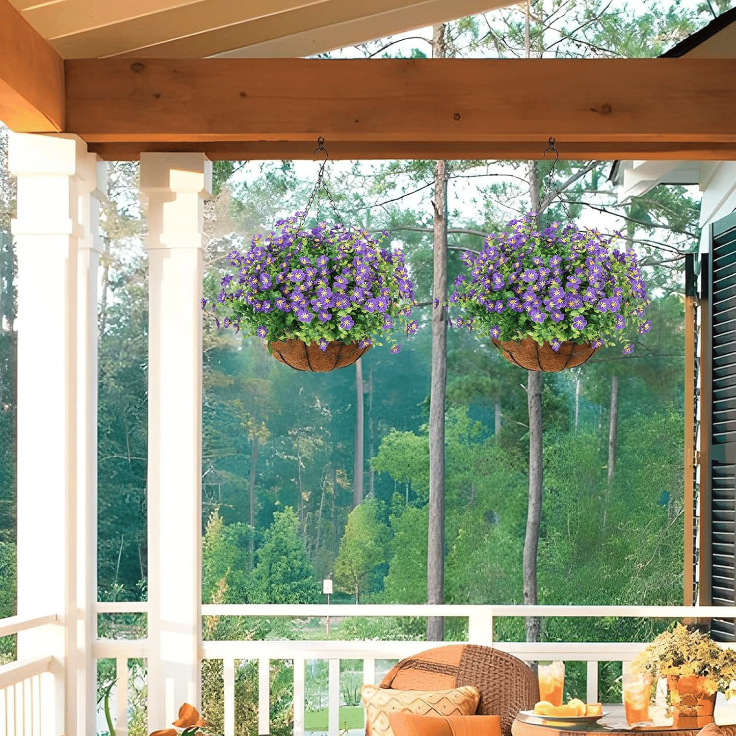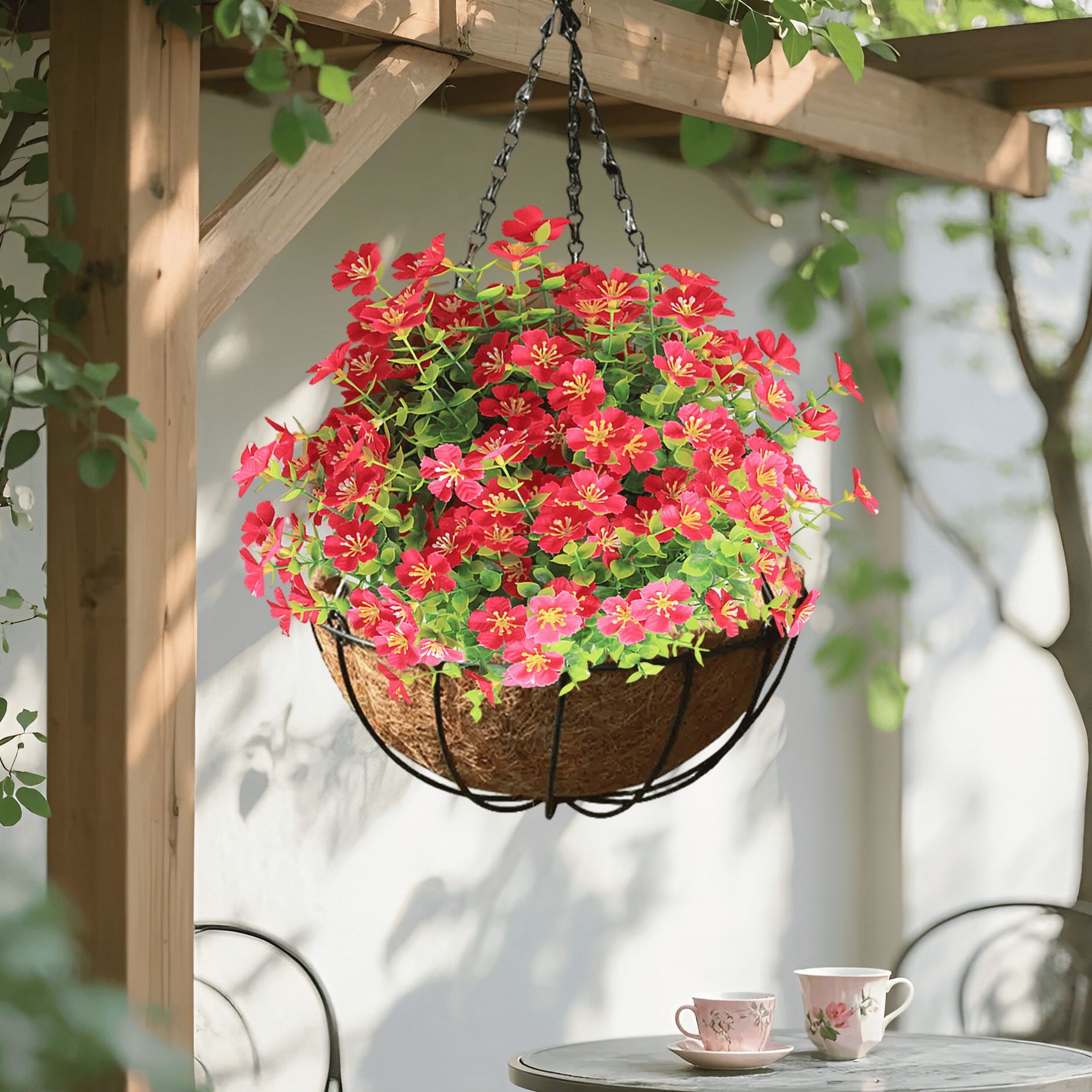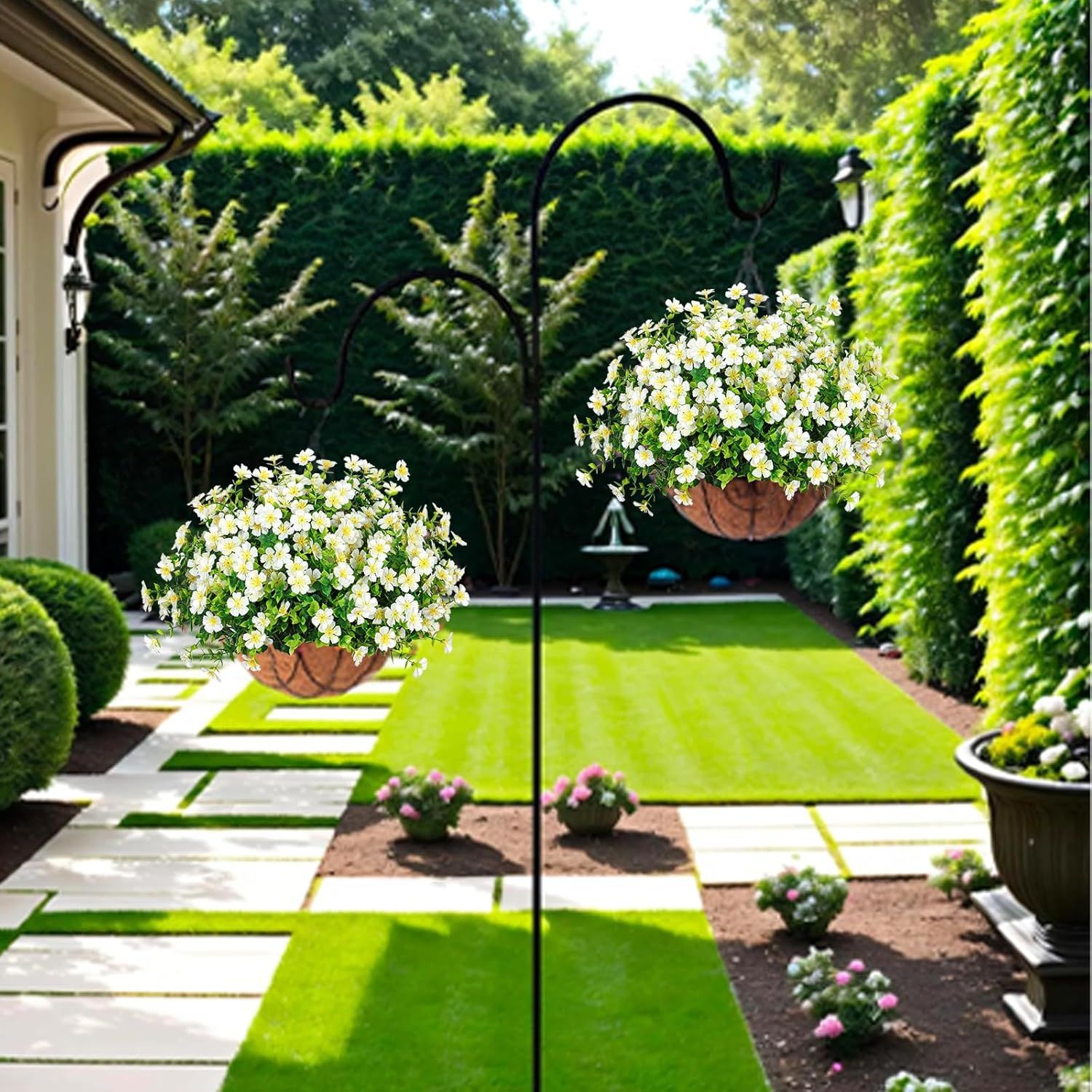 - Package Contents: Artificial flowers, Hanging baskets
