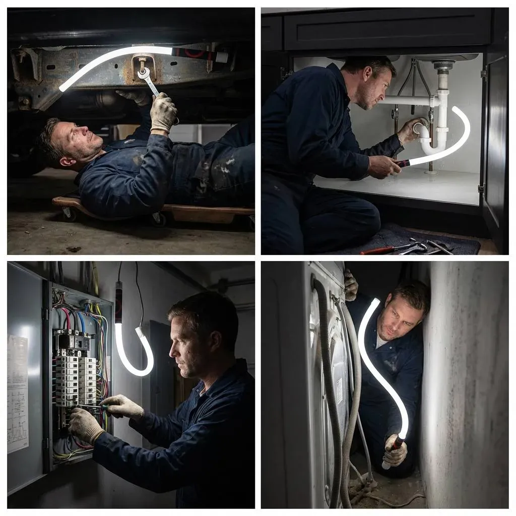 Designed for mechanics, DIYers, and anyone who works in dark, tight, hard-to-reach spaces — the LED Flashlight Stick bends, twists, and locks light exactly where you need it.