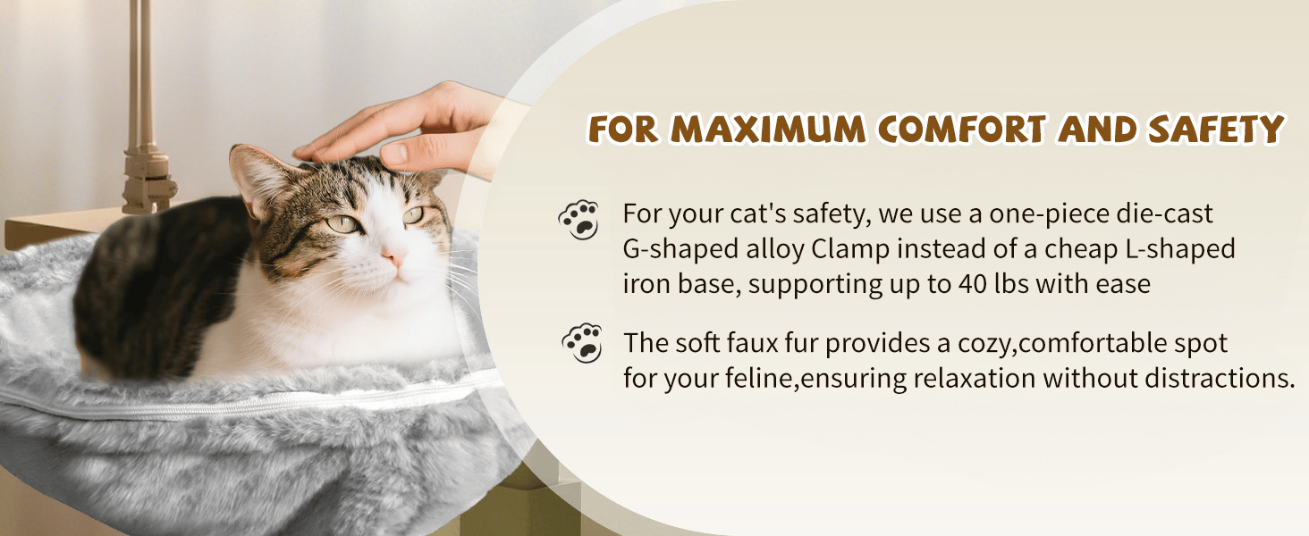 - 🐱 Cozy & Strong Support – Built with sturdy ABS + plush faux rabbit fur, it holds up to 50 lbs, keeping cats safe and comfy.