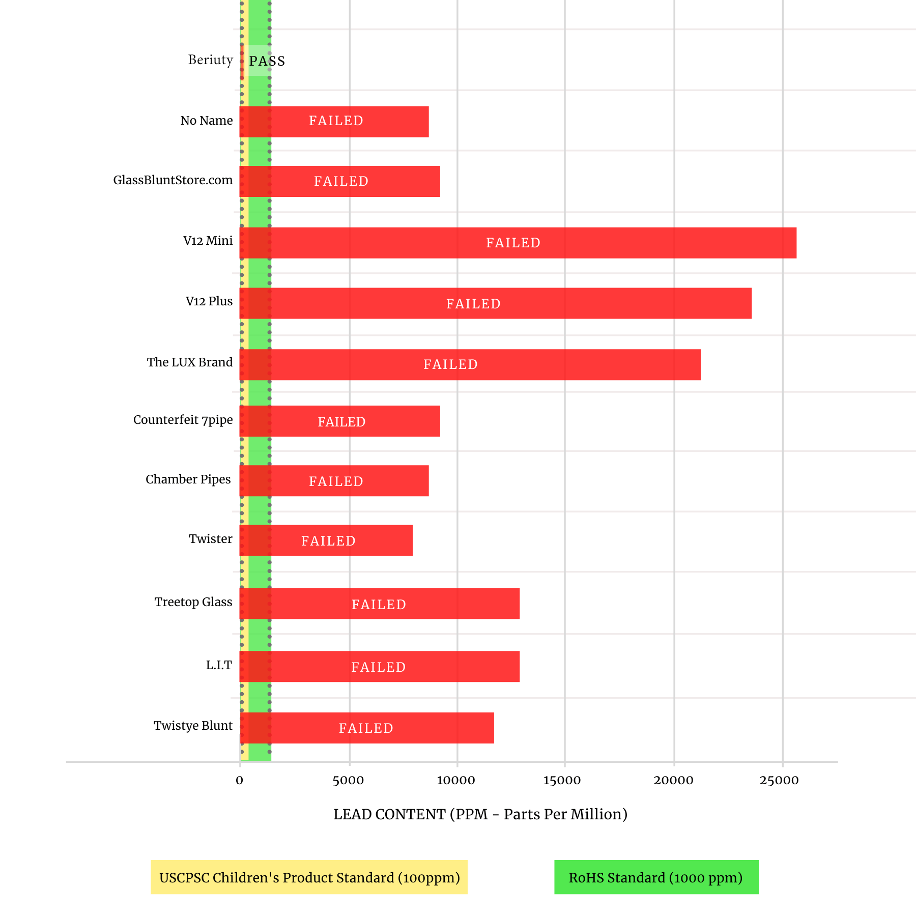 When Beriuty introduced the TwistyTM in 2016, the instant worldwide popularity of our pipe ledto an explosion of counterfeit activity. Unscrupulous snake oil salesmen started selling cheapknockoffs. Their dark secret, however, was that these fake Twistys were full of LEAD.We used a US CPSC certified laboratory to test these fakes for lead, and in the chart below, youcan see the results. lf you or a friend know of someone smoking a fake Twisty, tell them totrash it immediately.