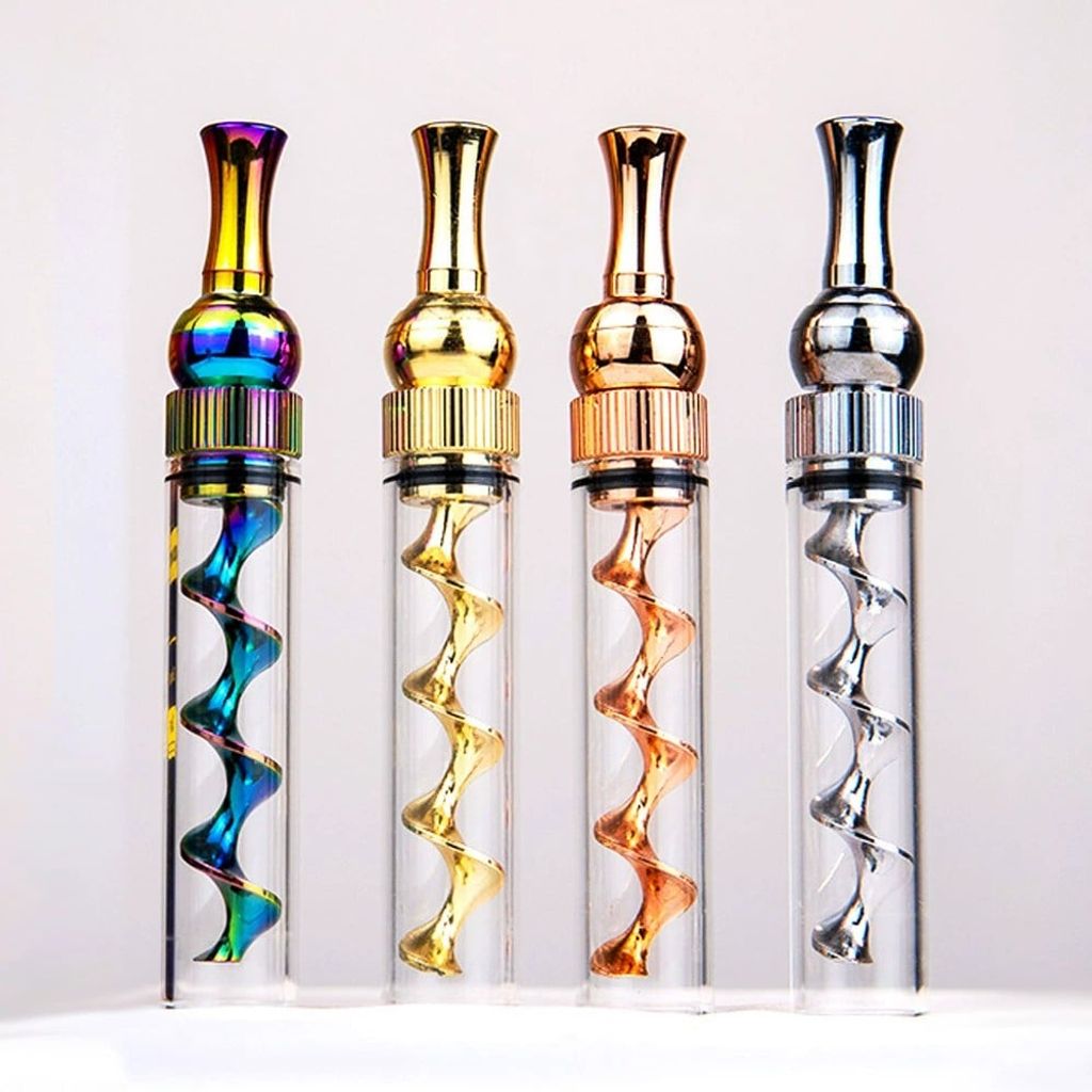 The Twisted Glass Blunt was engineered to have a unique infini-cherry to avoid having to light the blunt before every hit. Each Glass Blunt comes with a premium 2mm thick Quartz glass that is ready to give you a clean hit every time.