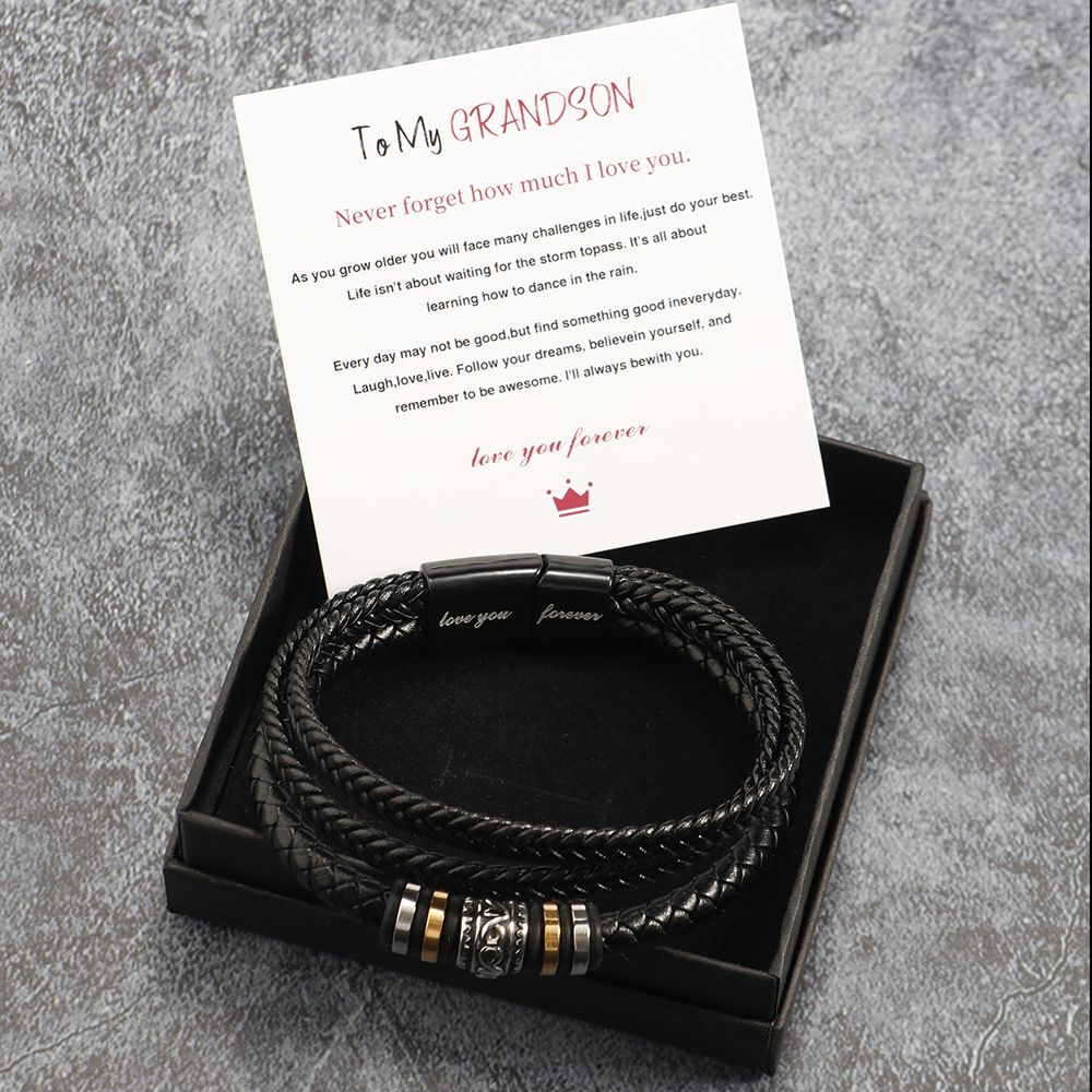 Gift your grandson the Braided Leather Bracelet with Name Engraving — a meaningful symbol of your love, belief, and unwavering support. A daily reminder for him to face life’s challenges with courage, stay true to himself, and always remember how deeply he’s loved.