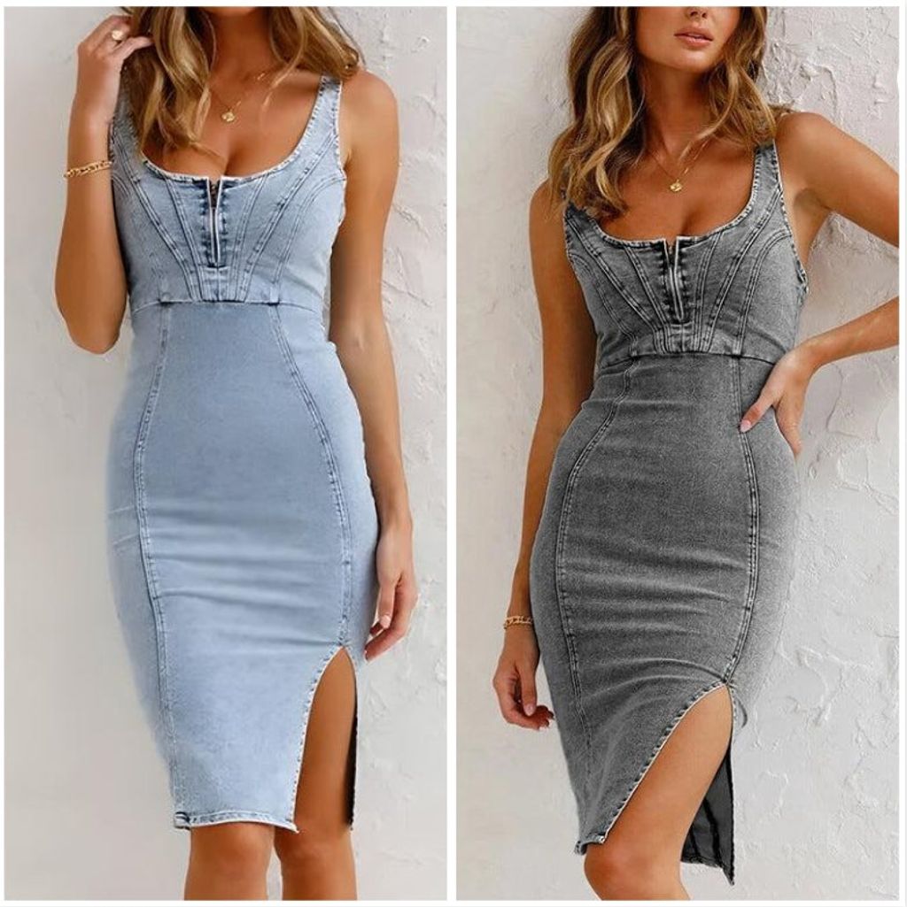 🍹🌤️Women's U-Neck Denim Bodycon Cami Dress