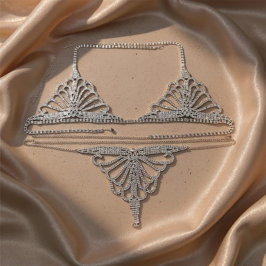 Turn up the glam with a set that’s as dazzling as you are. This masterpiece features rhinestones that catch the light with every move, paired with delicate chain details for an ultra-seductive edge. Designed to make you shine, shimmer, and steal the show—because nothing should sparkle more than you.