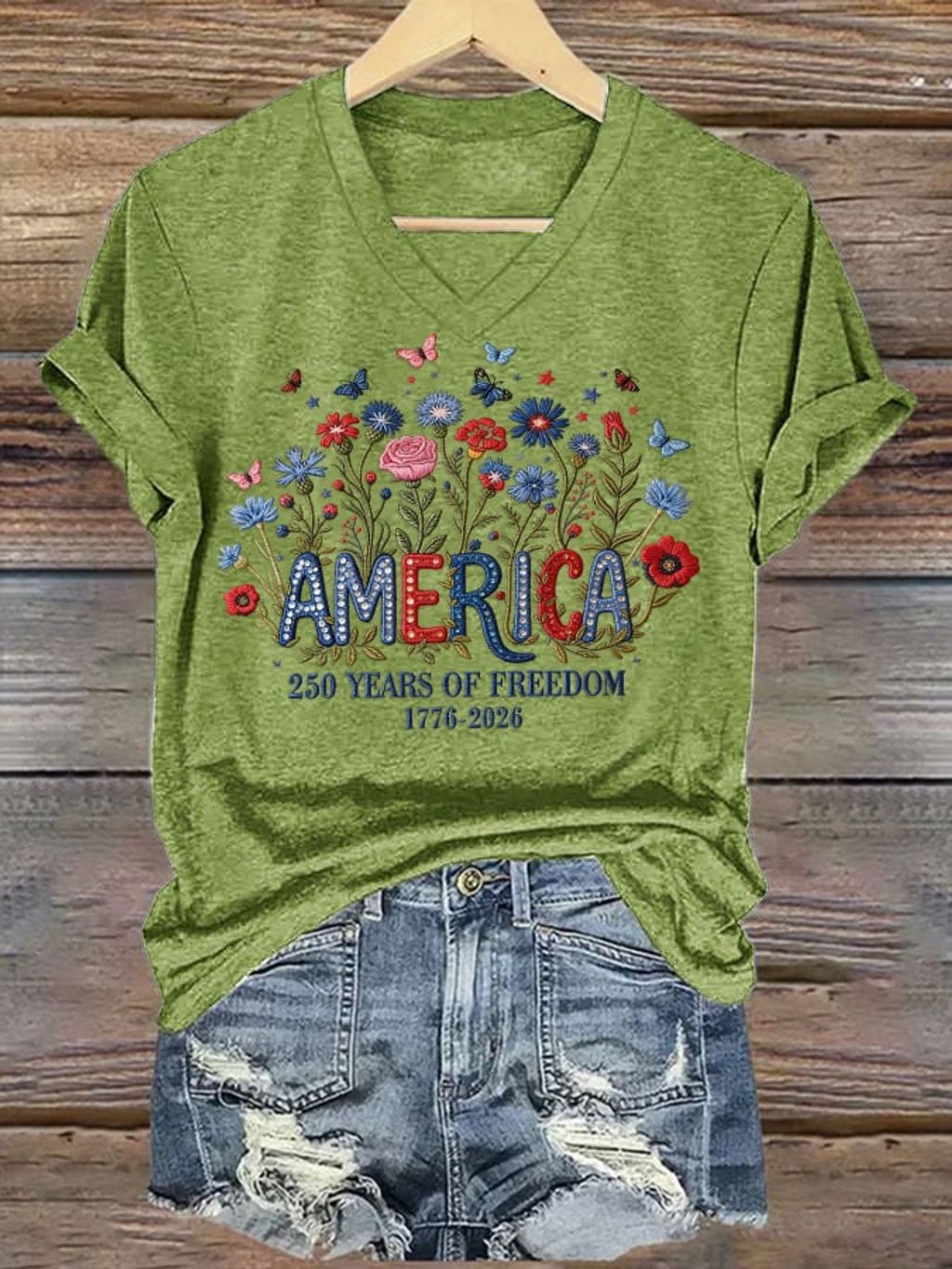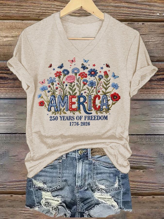 Women's casual retro American 250th T-shirt
