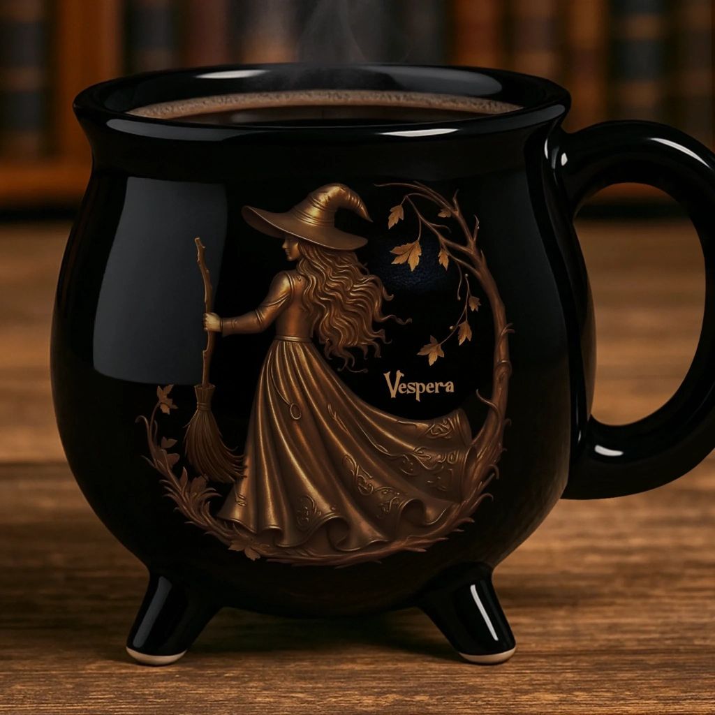 Custom 12oz Ceramic Cauldron Coffee Mug - Personalized Halloween Witchy Gifts - Midnight Magic