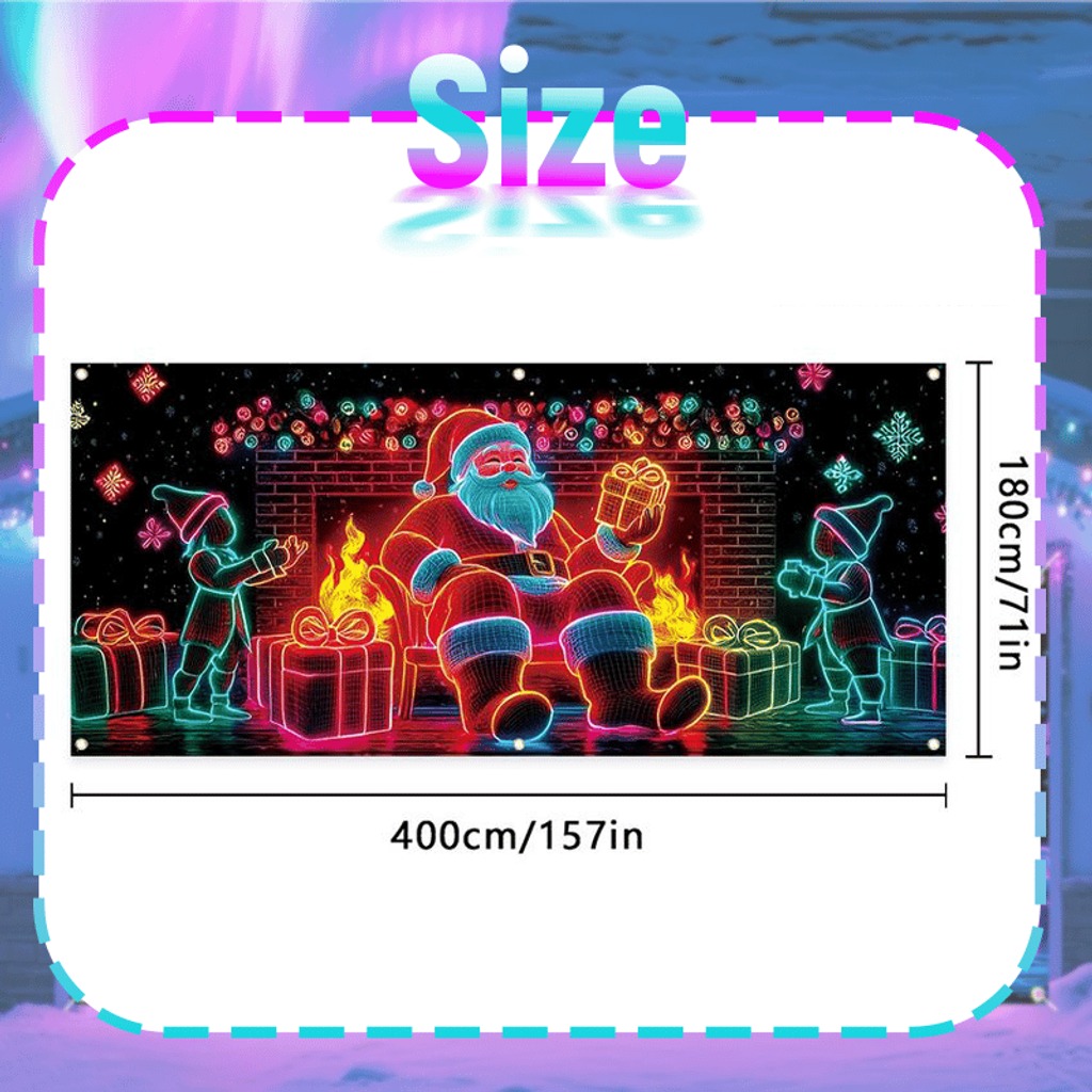 - 400cm/157in x 180cm/71in / 🎅 Neon Santa & Gift Wonderland