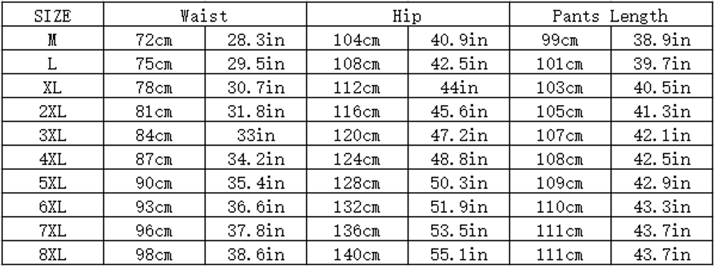 | 8XL | 98cm | 38.6in | 140cm | 55.1in | 111cm | 43.7in |