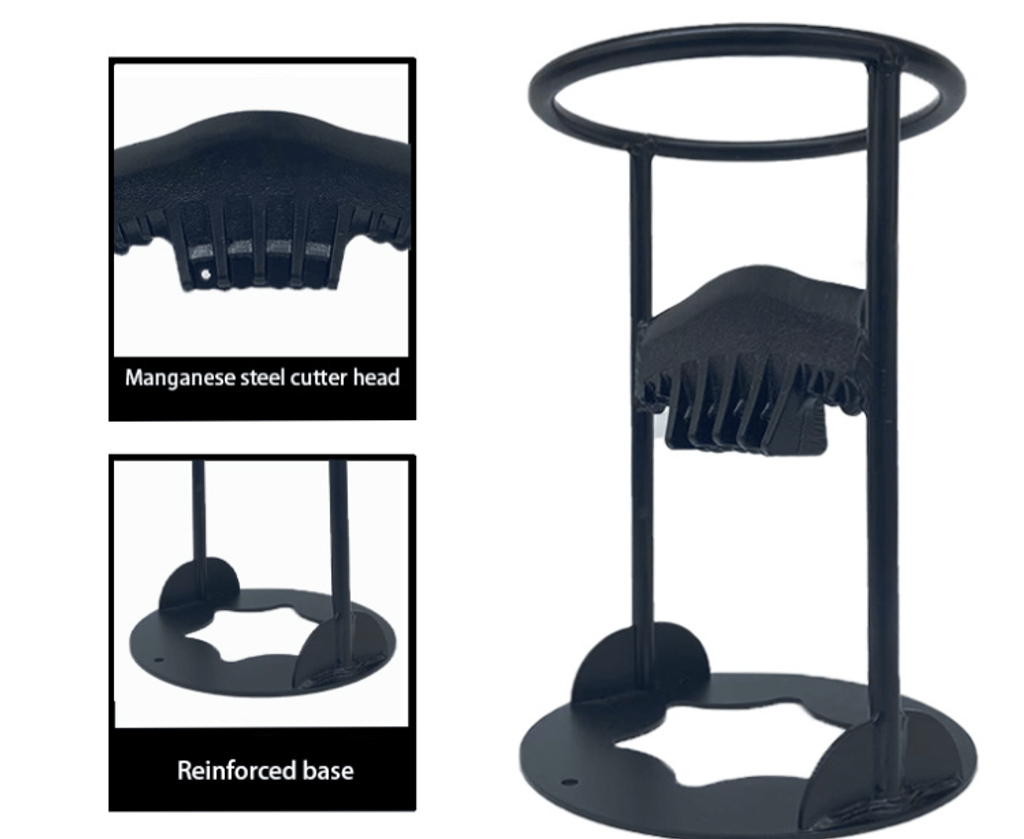 - There's never any need to swing a sharp, heavy axe — the cast iron splitting head remains stationary, permanently mounted inside a cast metal frame