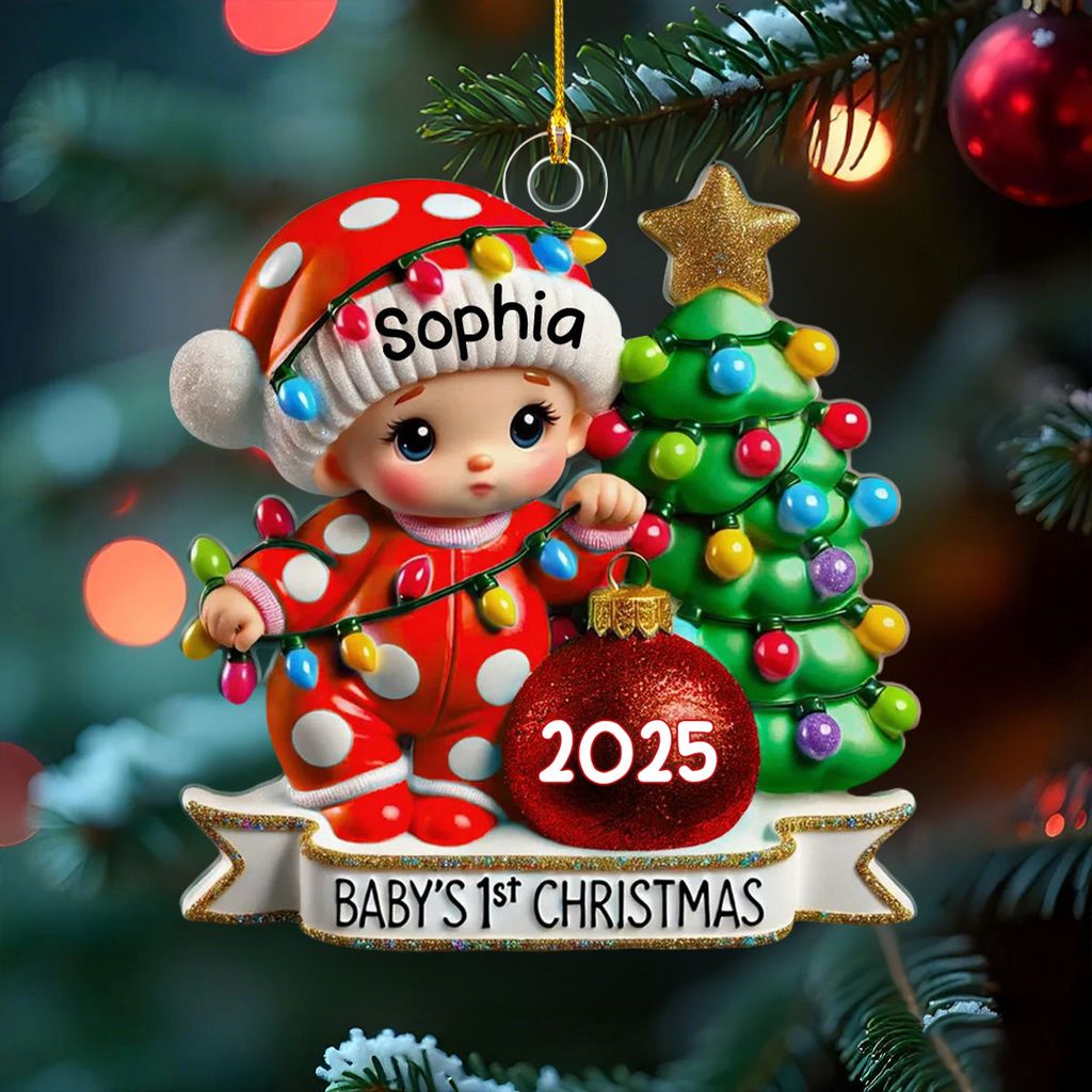 Baby First Christmas 3D Effect Personalized Acrylic Ornament - Gift for Newborn