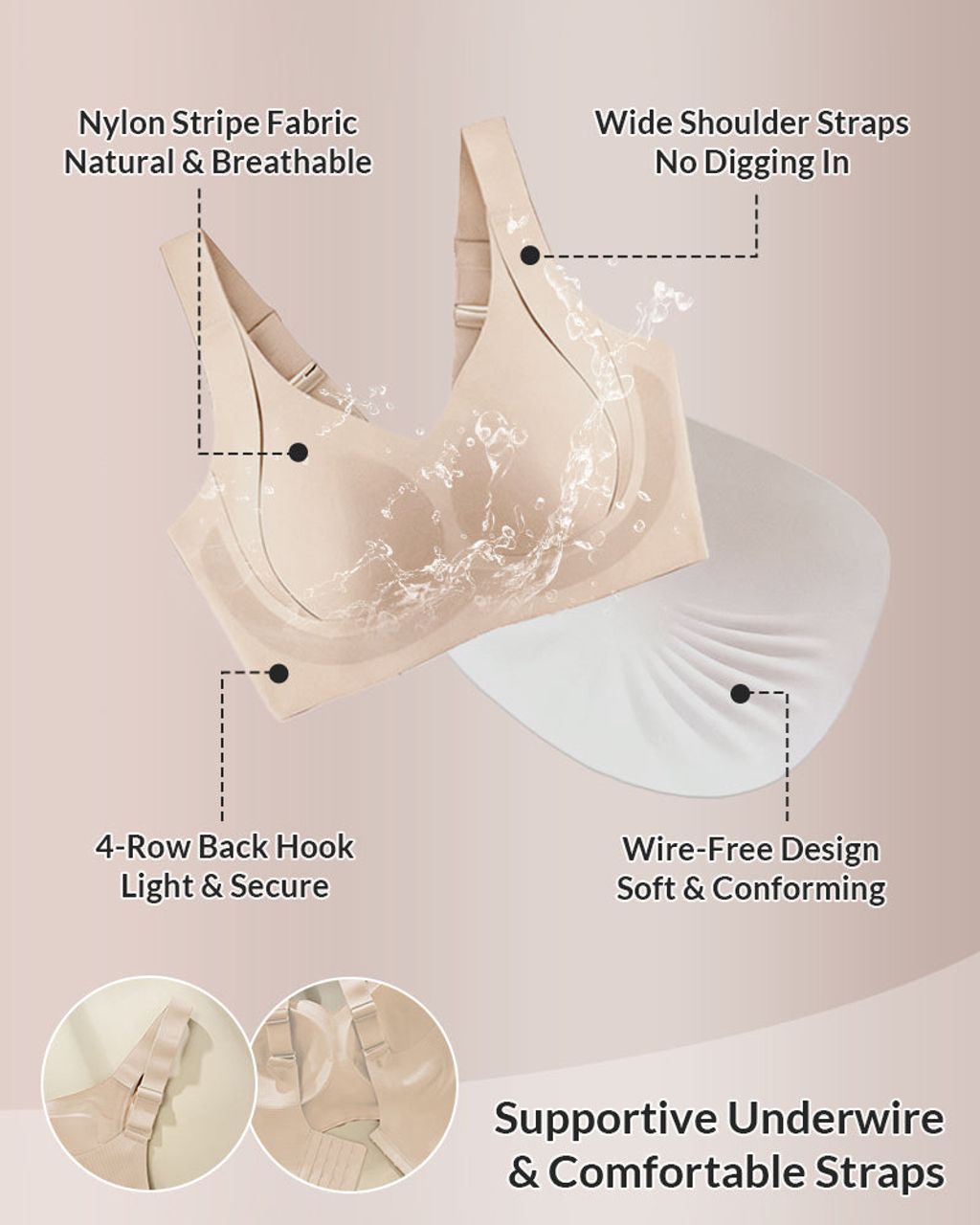 Soft, breathable fibers and removable pads let you customize your fit without underwire discomfort—perfect for everyday wear, better posture, and lasting confidence.