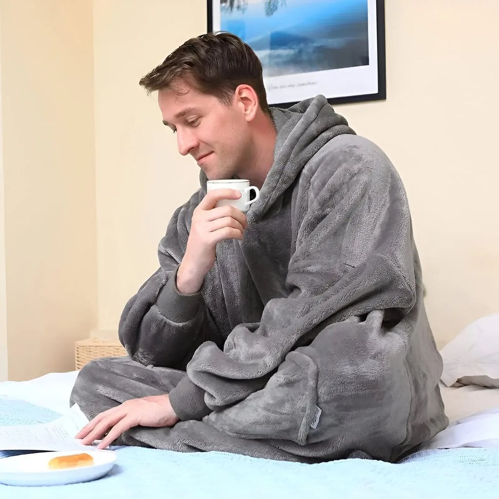 Indulge in the ultimate luxury with our Cozy Blanket Hoodie, designed for supreme softness and comfort. Whether you're working from home, unwinding on the couch, gaming, reading, camping, or enjoyingmorning walk with your pet, this hoodie has you covered. The oversized hood keeps your head warm, while the wide neck design offers effortless wear and a snug, cozy fit around your neck.