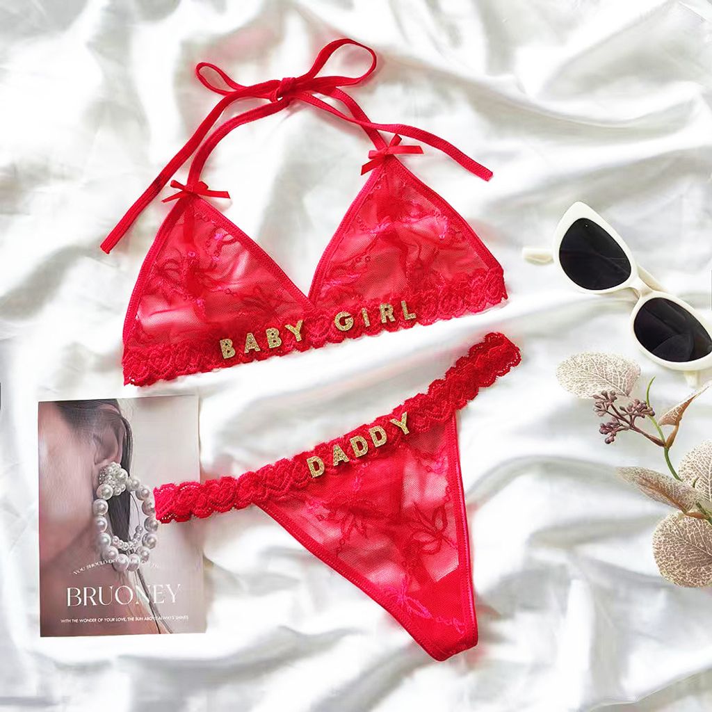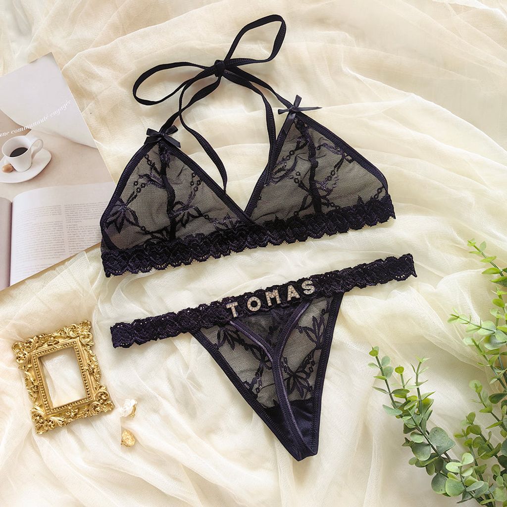 Choose from 7 different colors of premium lace underwear and we will add the name, initials or slogan of your choice with our AAA crystal rhinestone letters.