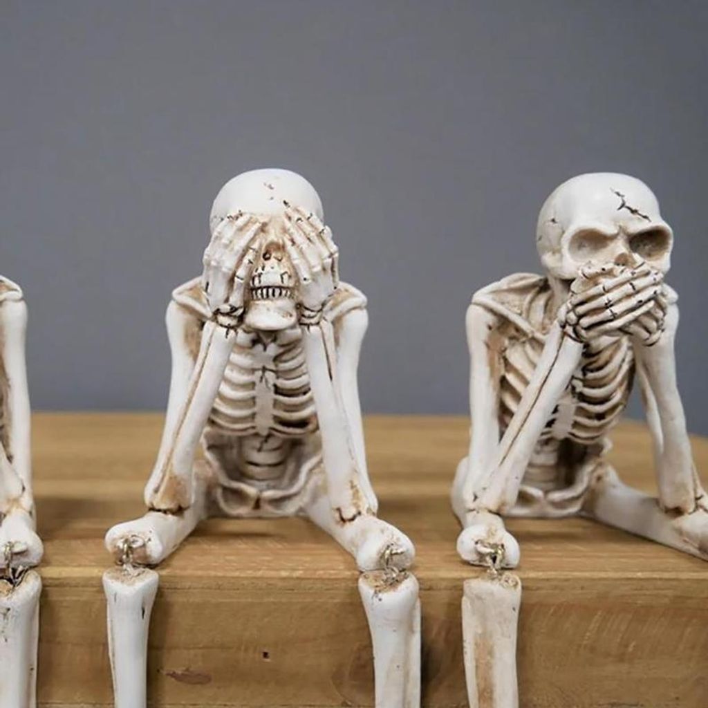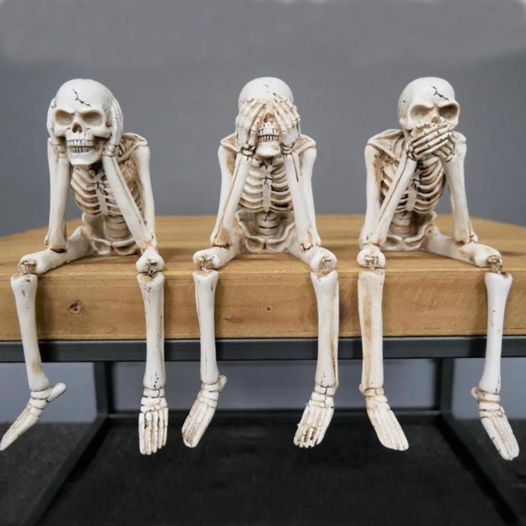 🖤 Perfectly Spooky: A playful twist on the “Three Wise Monkeys” concept—only with bones and attitude.Each one strikes a classic “No Evil” pose—covering their eyes, ears, or mouth—reminding us that sometimes silence is golden… and creepy is cool.