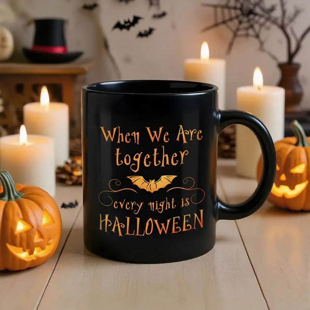 Celebrate the fun and spooky bond between sisters or best friends with this Halloween-inspired full color mug. Featuring the playful quote “When We Are Together Every Night Is Halloween” and a unique witch design under the bright orange moon, this mug is a reminder of the laughter, mischief, and unforgettable memories you share with your loved ones.