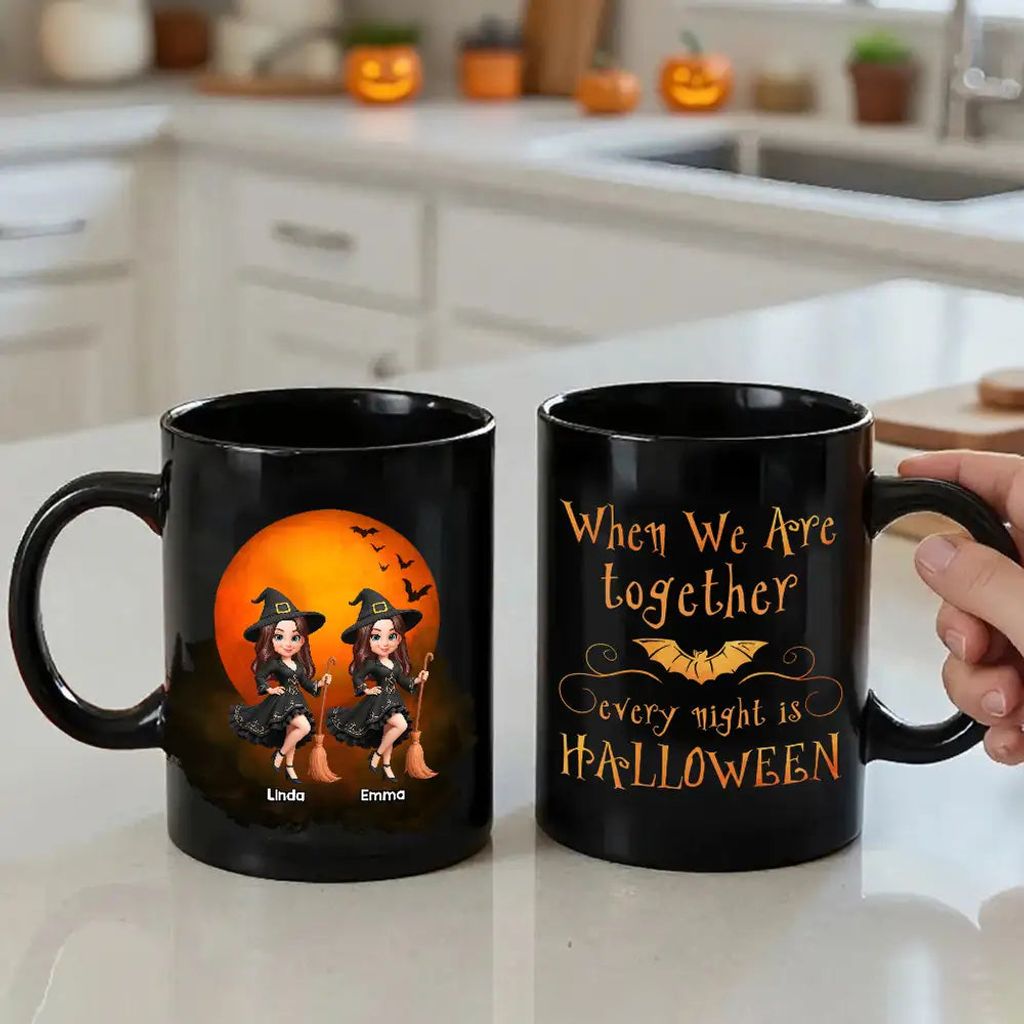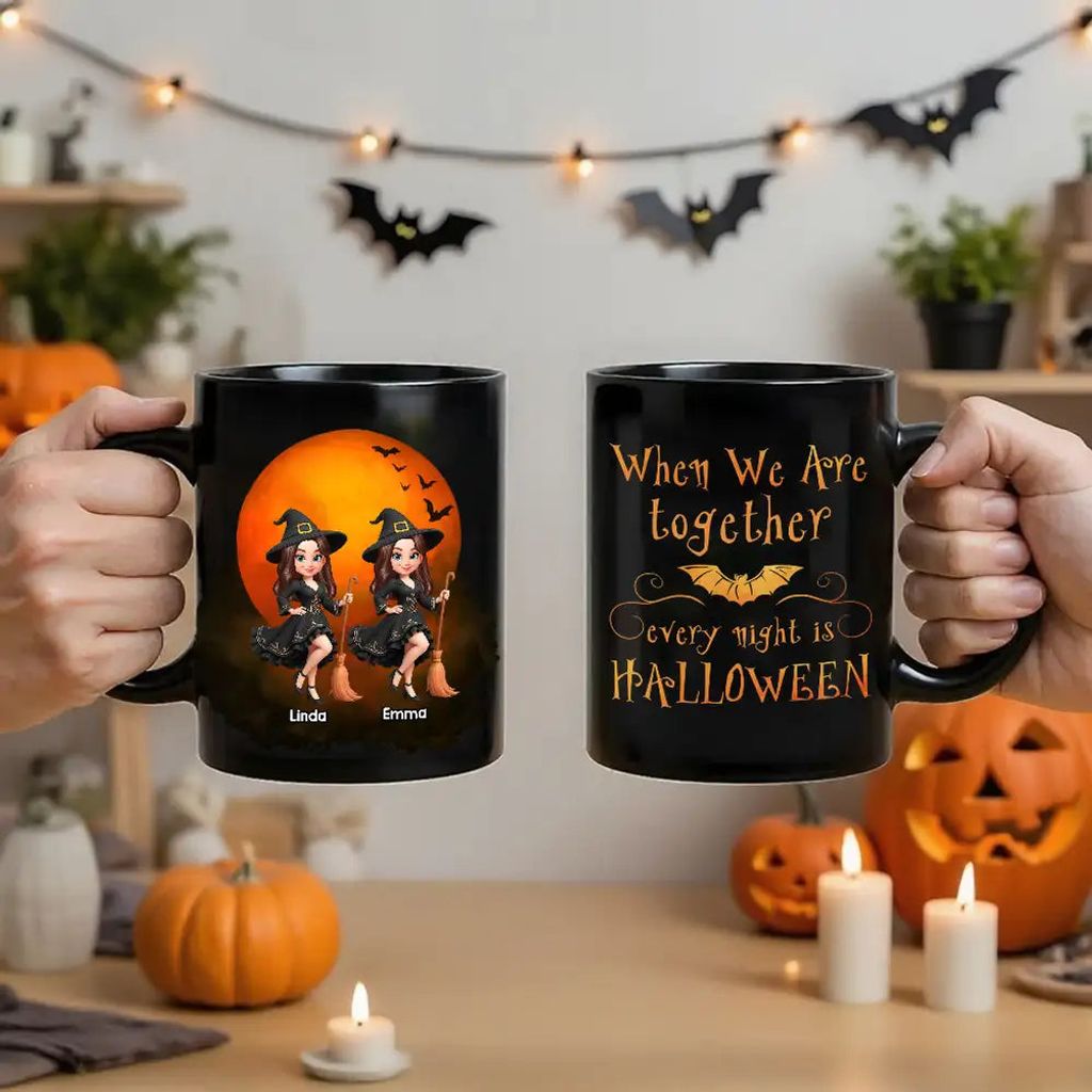 Full Color Mug - Witch Sisters Under Halloween Moon - When We Are Together Every Night Is Halloween