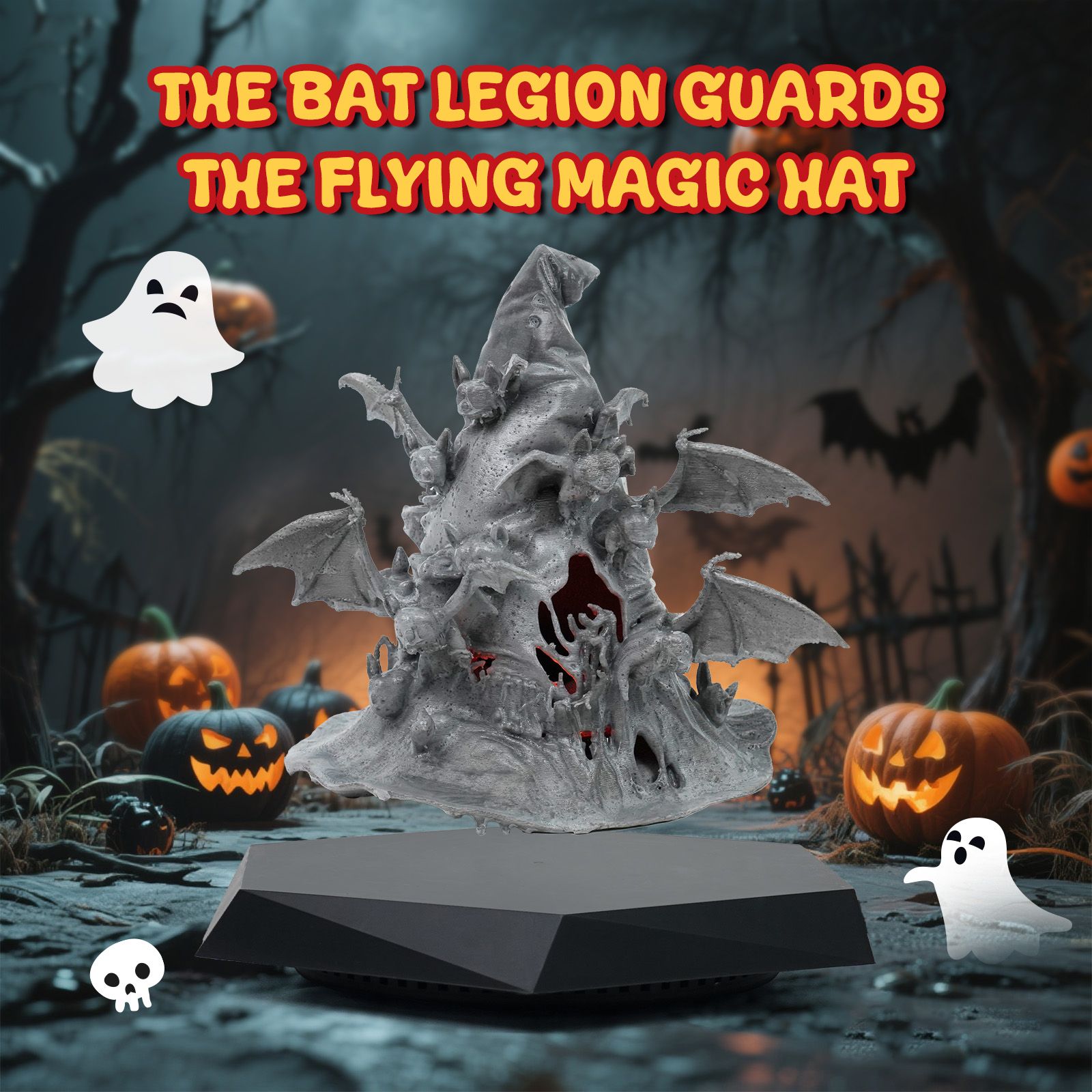 Magical Floating Design – A grey witch hat that levitates smoothly above its matching base, creating a stunning floating effect.