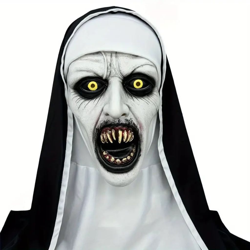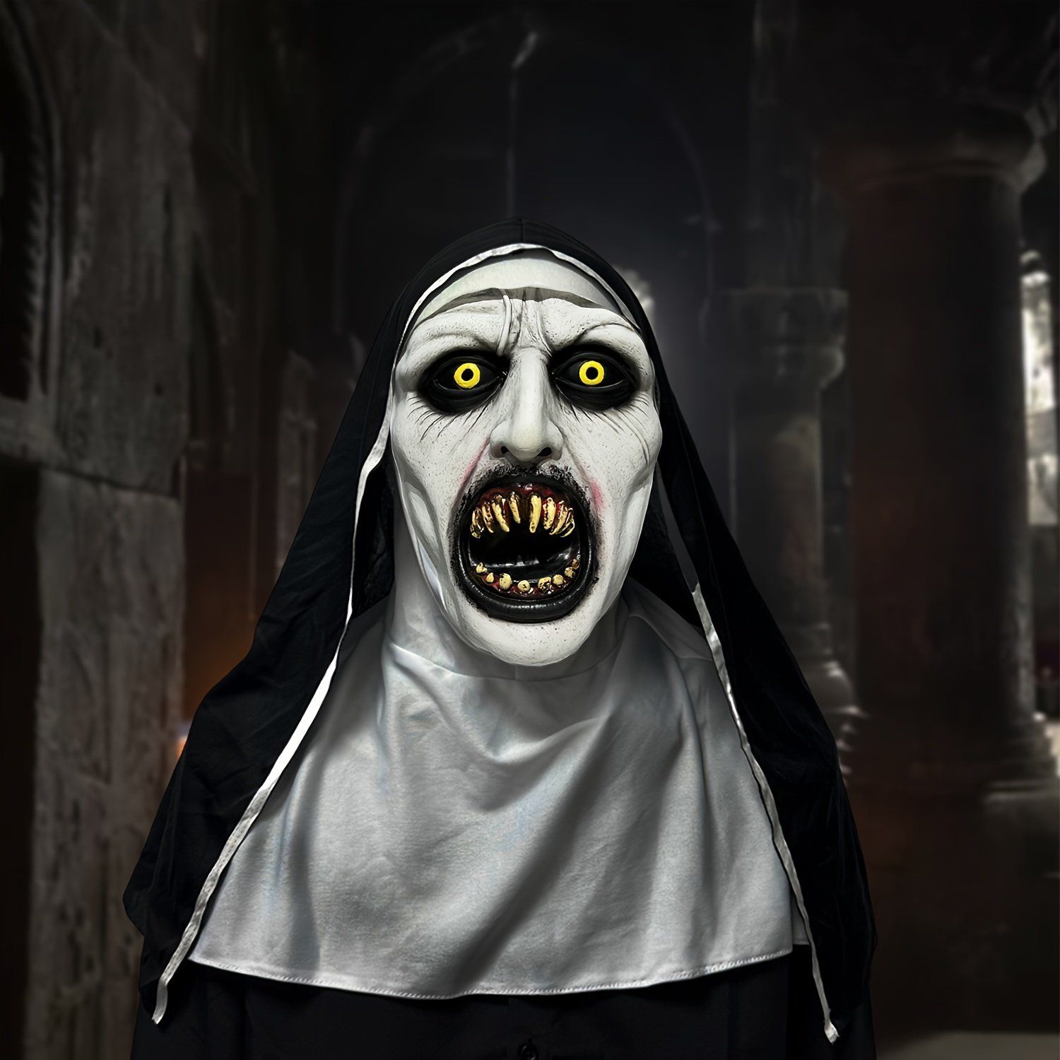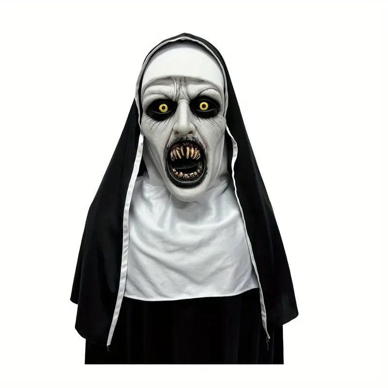 Step into a world of horror and mystery with this creepy latex nun mask. Let's kick off your night of horror!