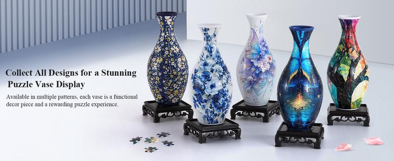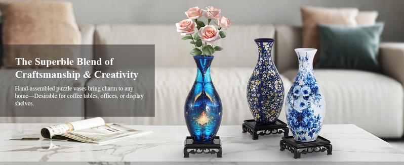 Elegant Home Decor: Multiple artistic patterns (like blue-and-white porcelain) turn this puzzle into a stylish vase for tables, shelves, or desks! 🌺