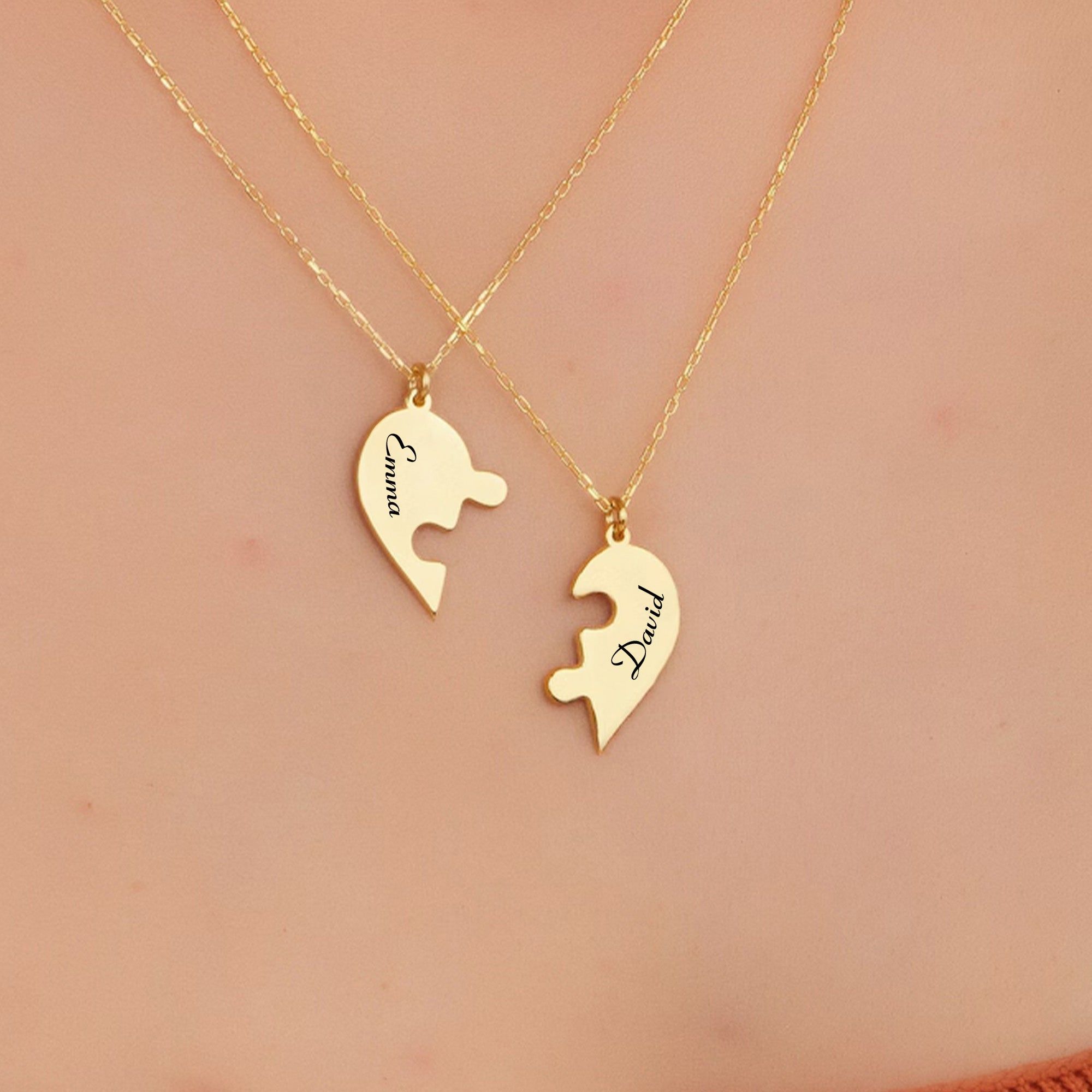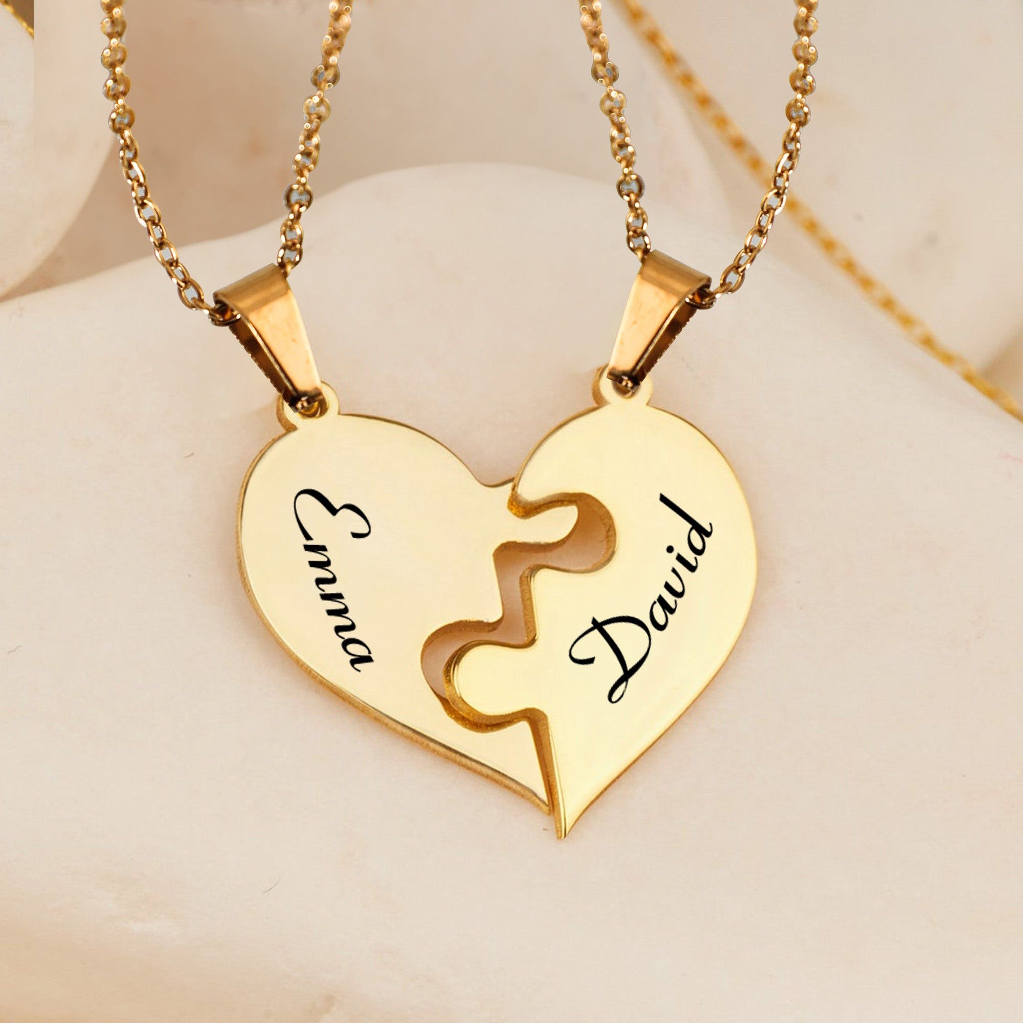 Personalized Puzzle Heart Necklace Set – Custom Name Engraved Family or Friendship Jewelry