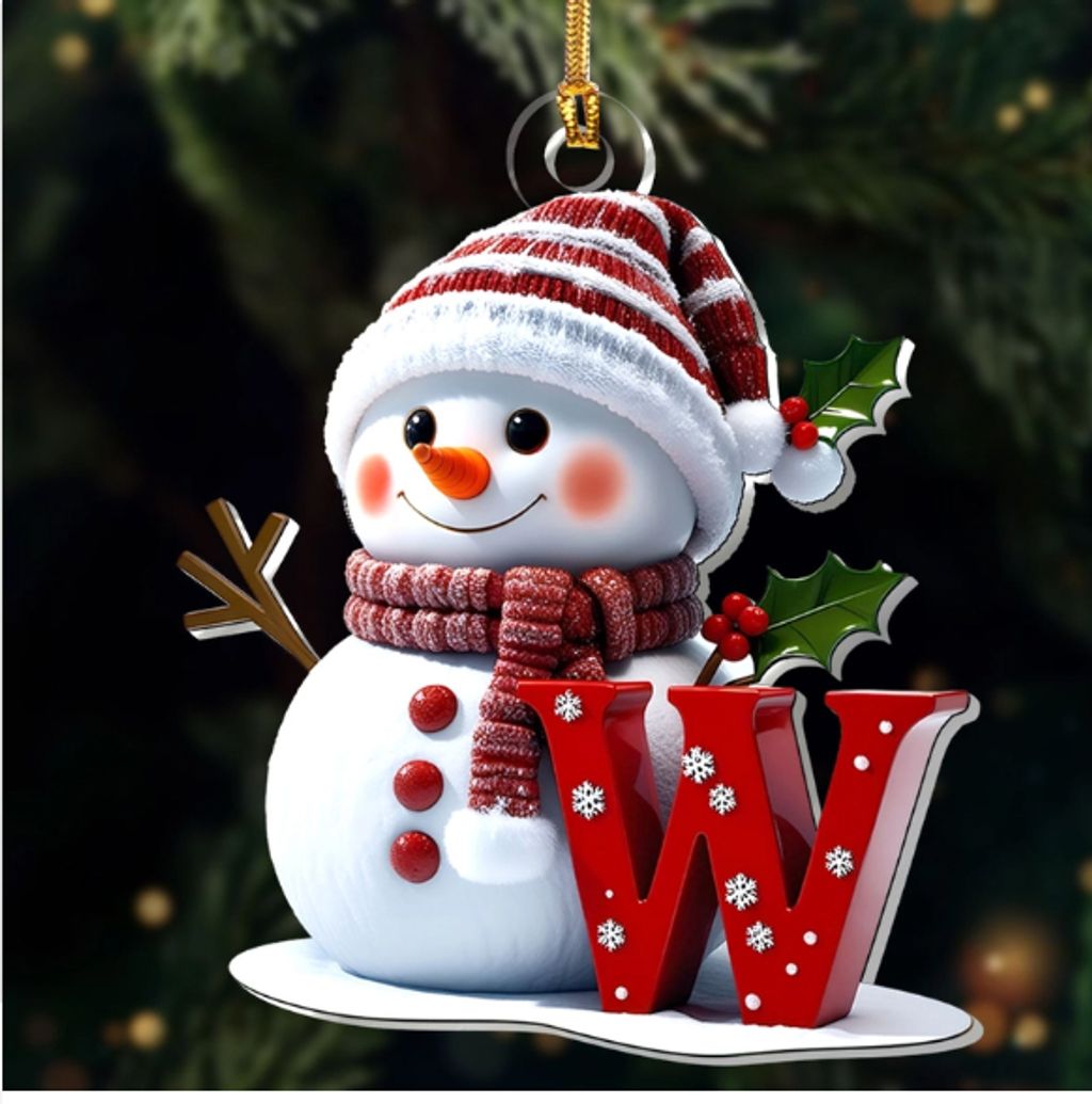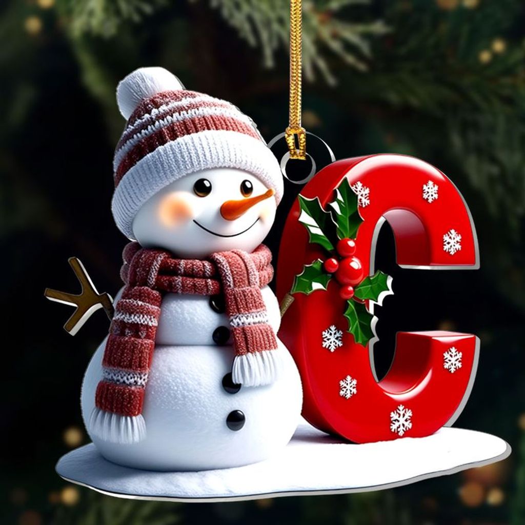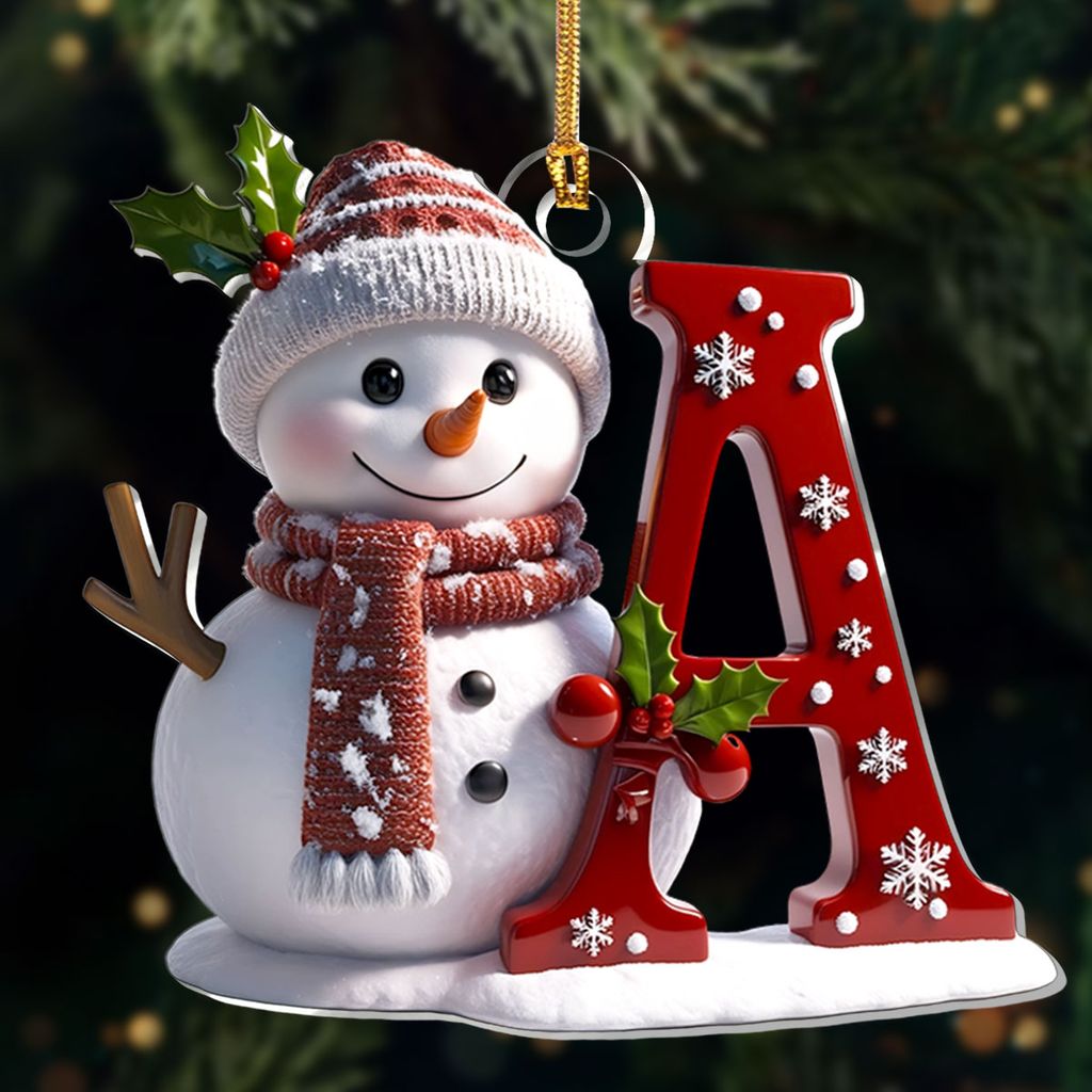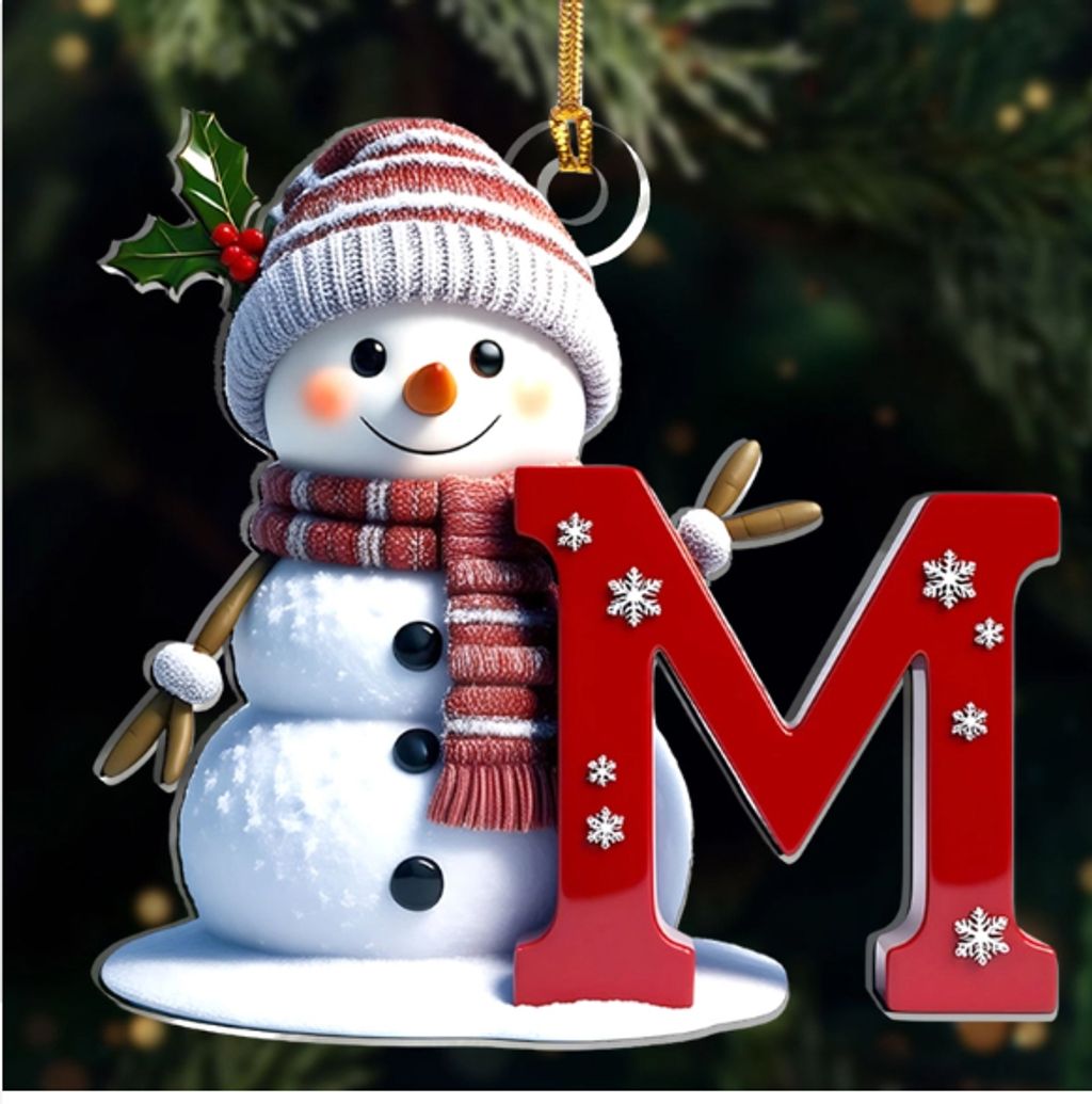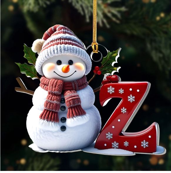 Snowman Merry Christmas - Initial Ornament