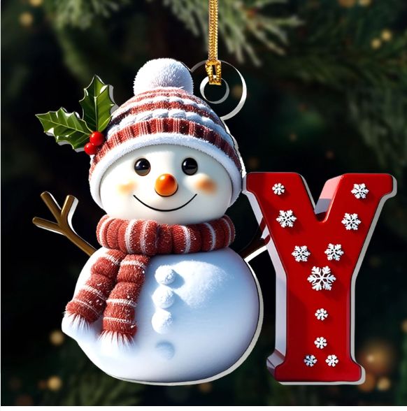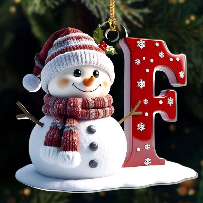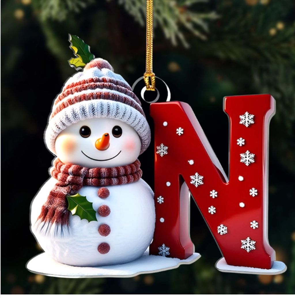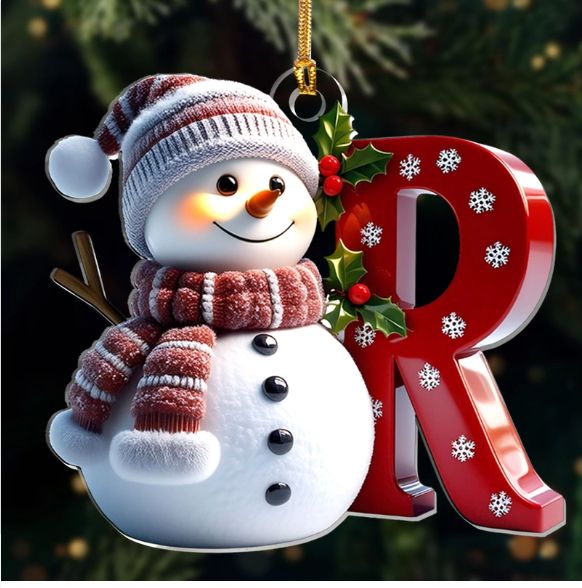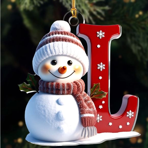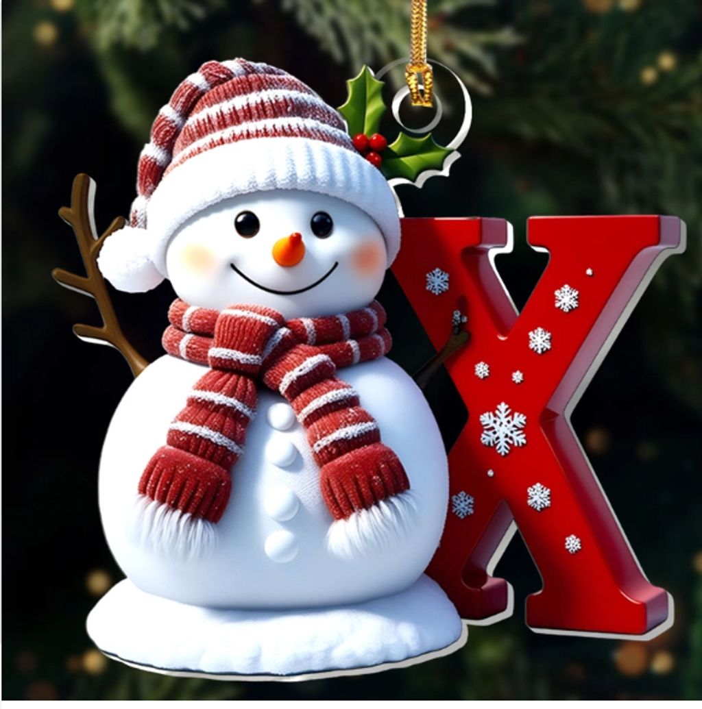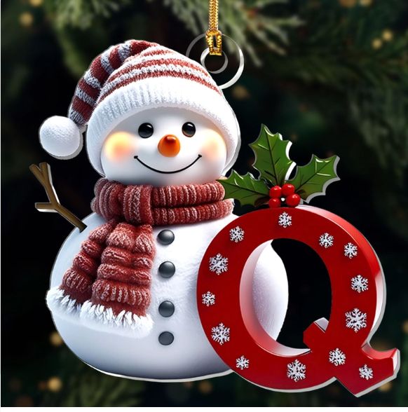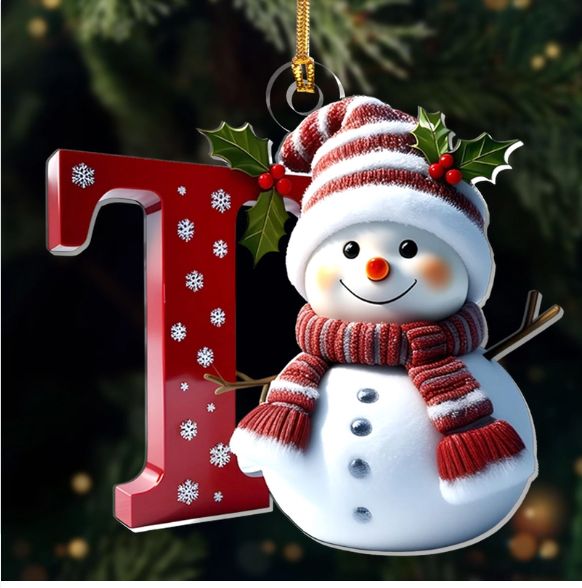 Snowman Merry Christmas - Initial Ornament