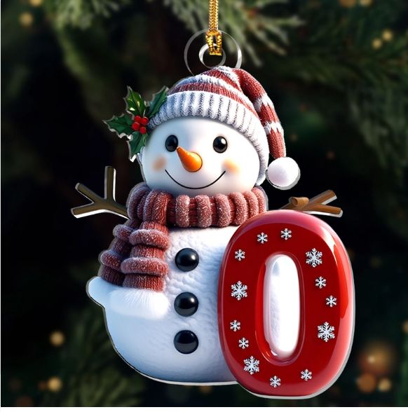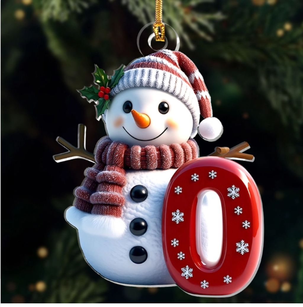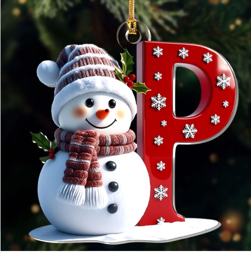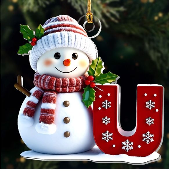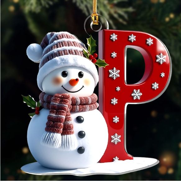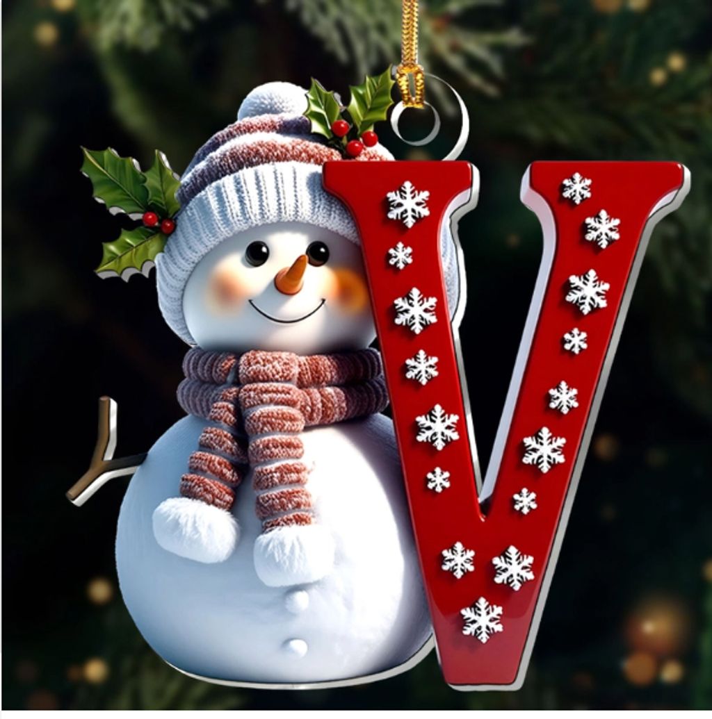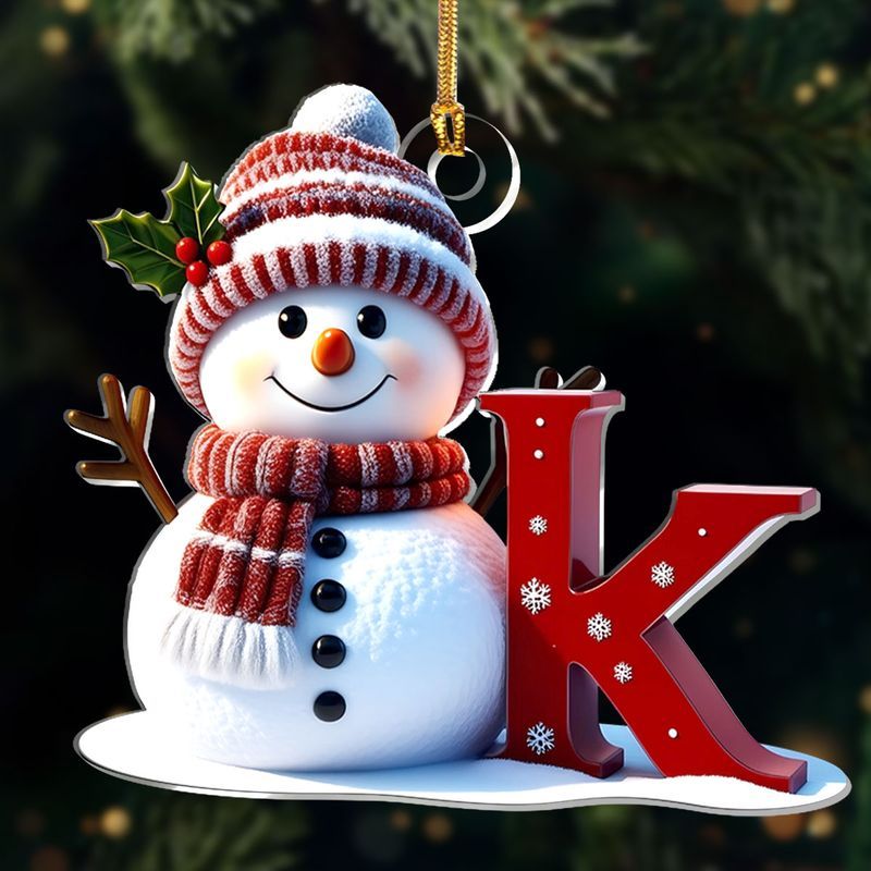 Snowman Merry Christmas - Initial Ornament