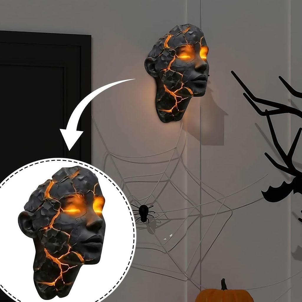 🔥Ignite your space with the Cracked Soul Wall Light – The glowing eyes and lava cracks draw people in instantly.With glowing orange light pouring through molten-like fissures.